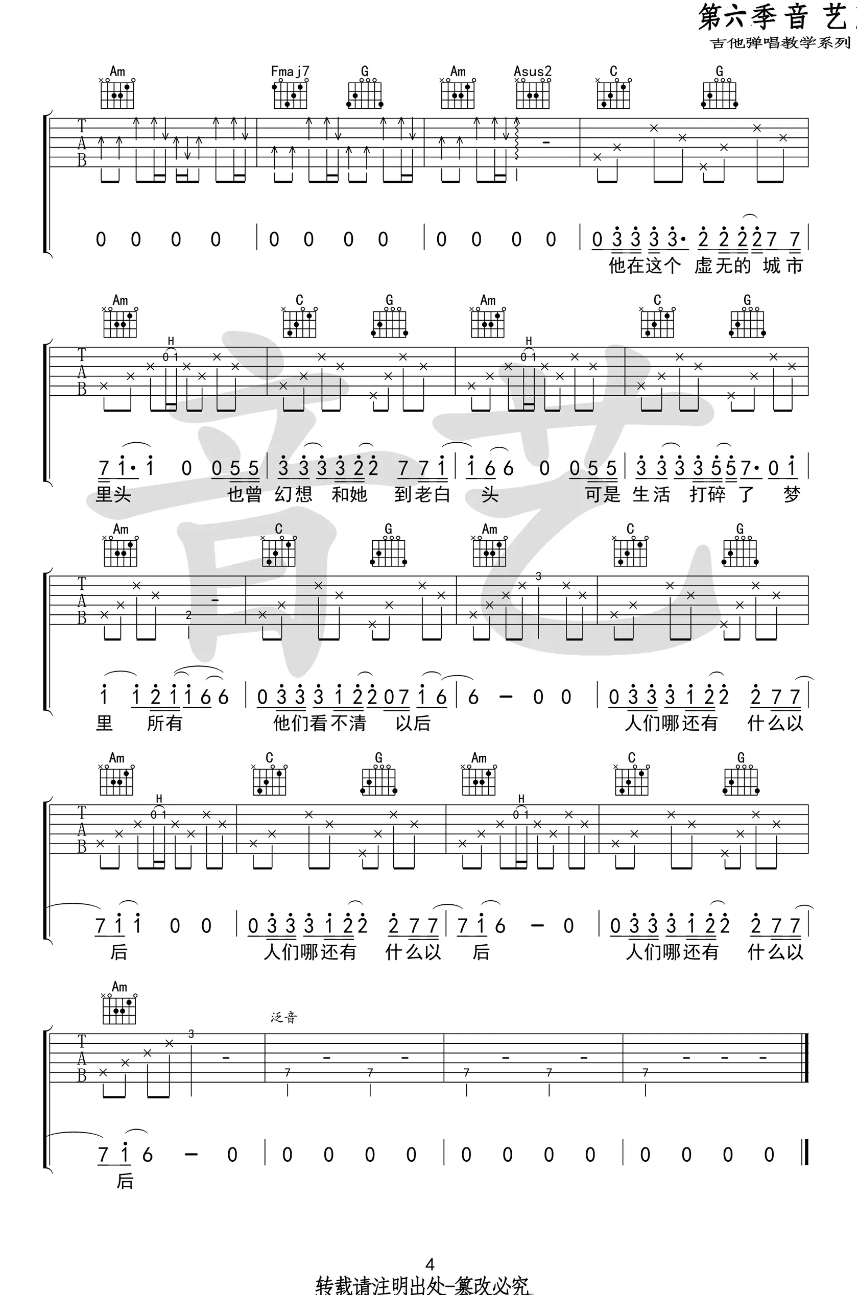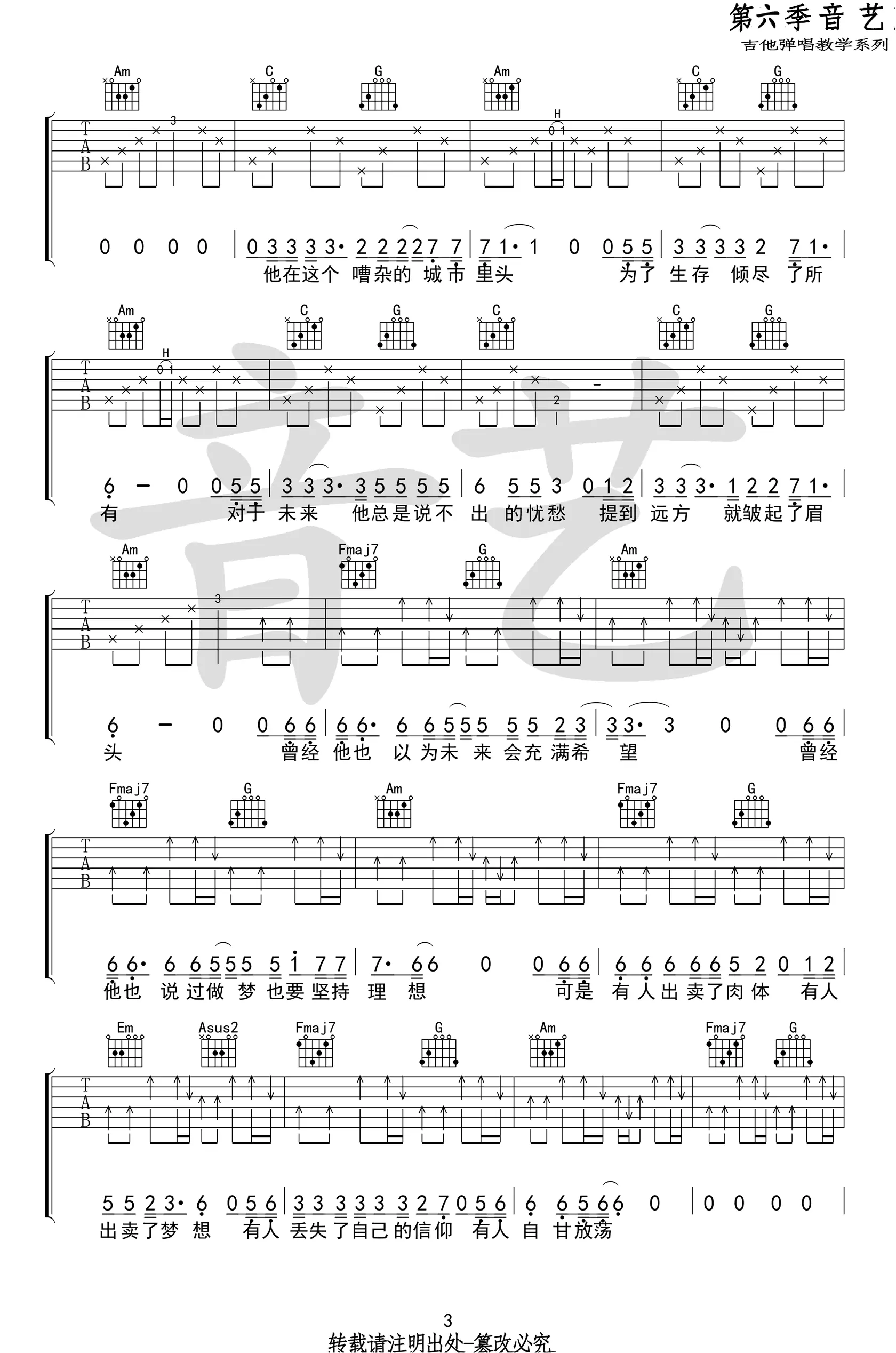 《城市》吉他谱_一三_C调_弹唱六线谱_高清图片谱
