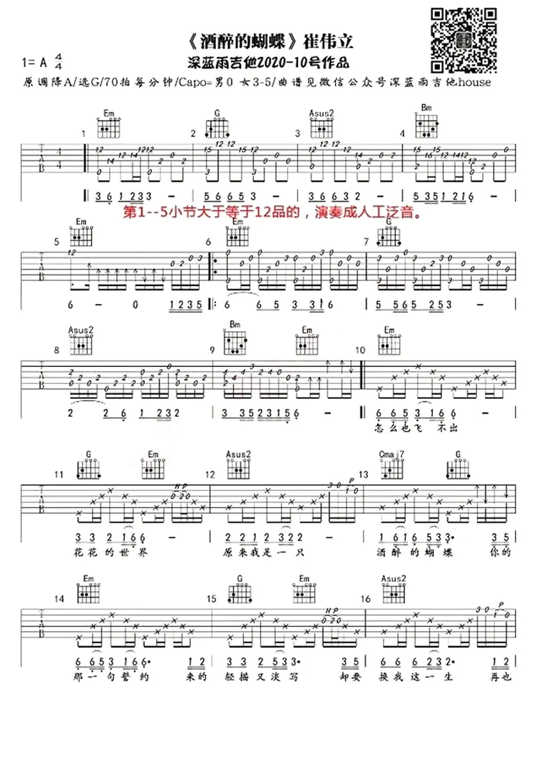 酒醉的蝴蝶吉他谱_崔伟立_G调_高清六线谱_图片谱