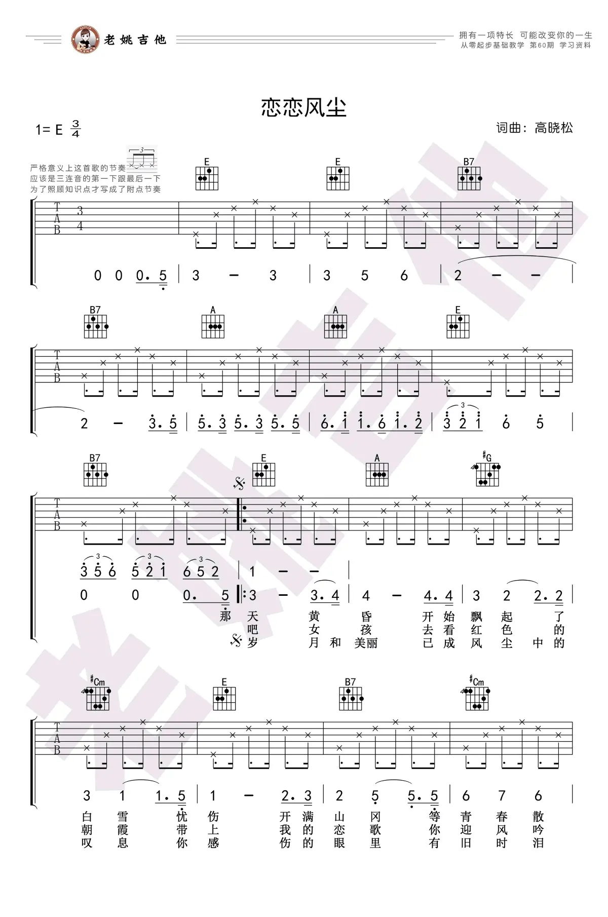 老狼《恋恋风尘》吉他谱,老狼演唱的一首歌曲,由高晓松作词作曲,收录于1995年发行的专辑《恋恋风尘》中,曲风校园民谣。吉他谱选调E调,共4张图片谱,由老姚吉他编配出品。