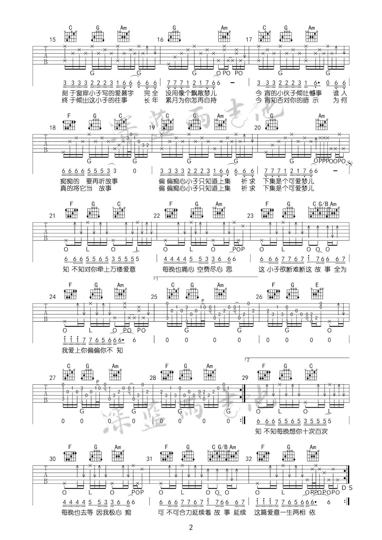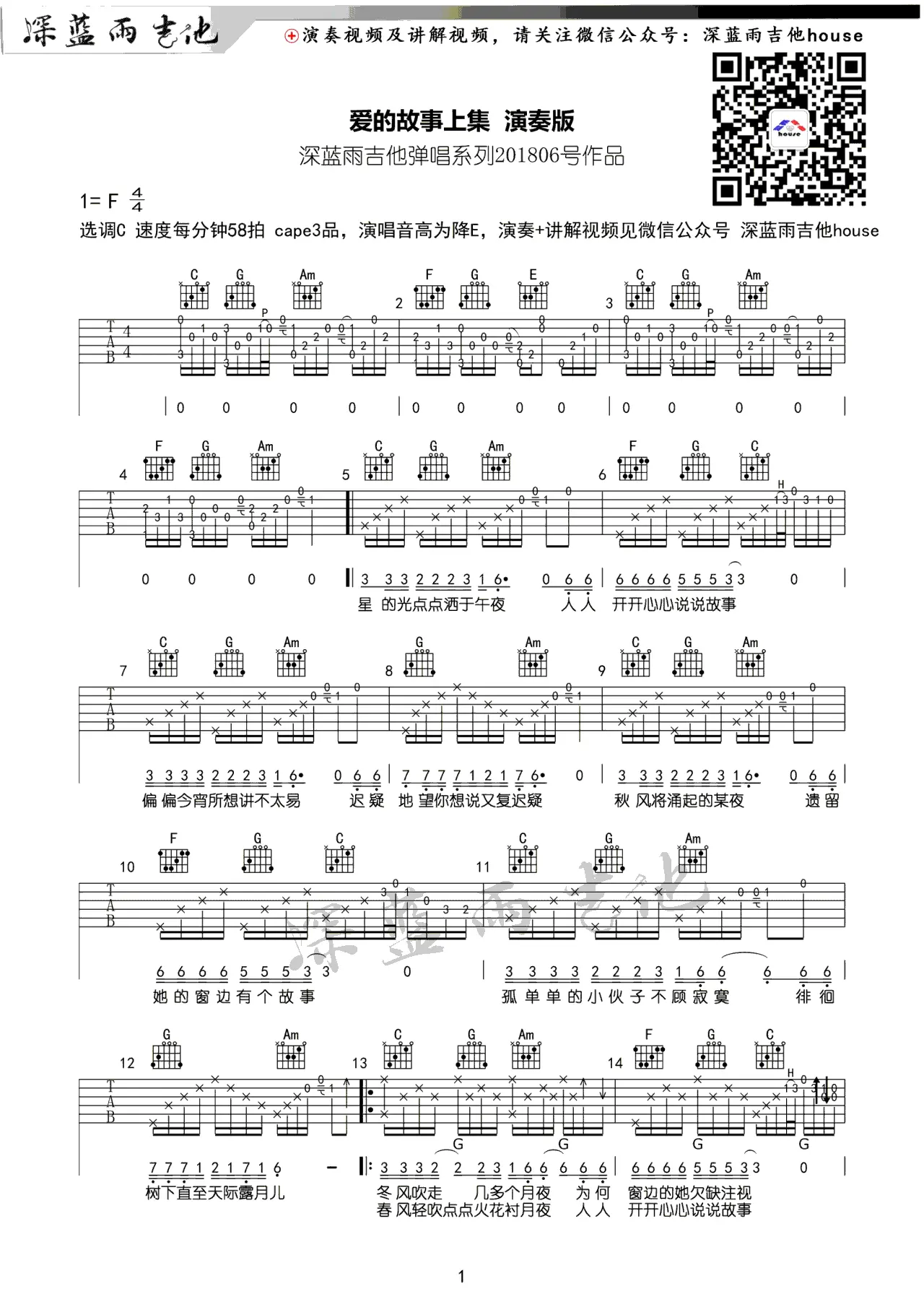 爱的故事上集吉他谱,孙耀威演唱的一首粤语歌曲,由潘伟源作词,George Takahashi作曲,收录于1994年发行的专辑《爱的故事上集》中。 歌曲原调bE,吉他谱选用C调指法编配,capo夹3品,由深蓝雨吉他编配出品。