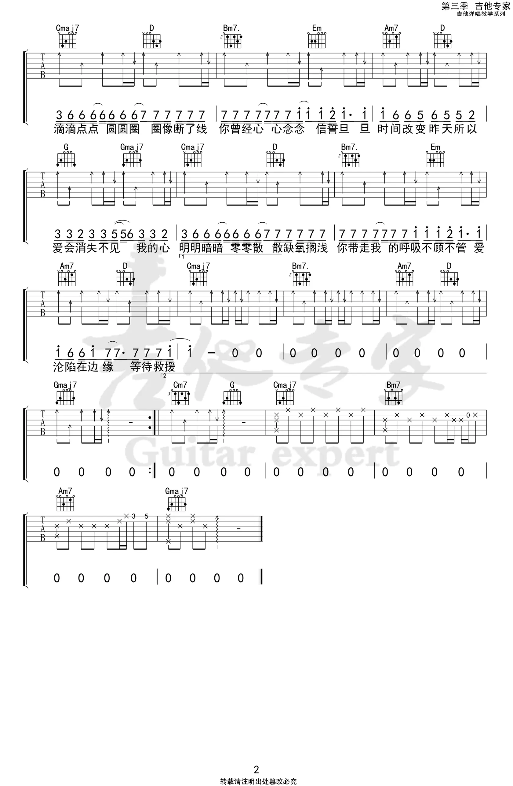 沦陷吉他谱_王靖雯不胖_G调_高清弹唱谱
