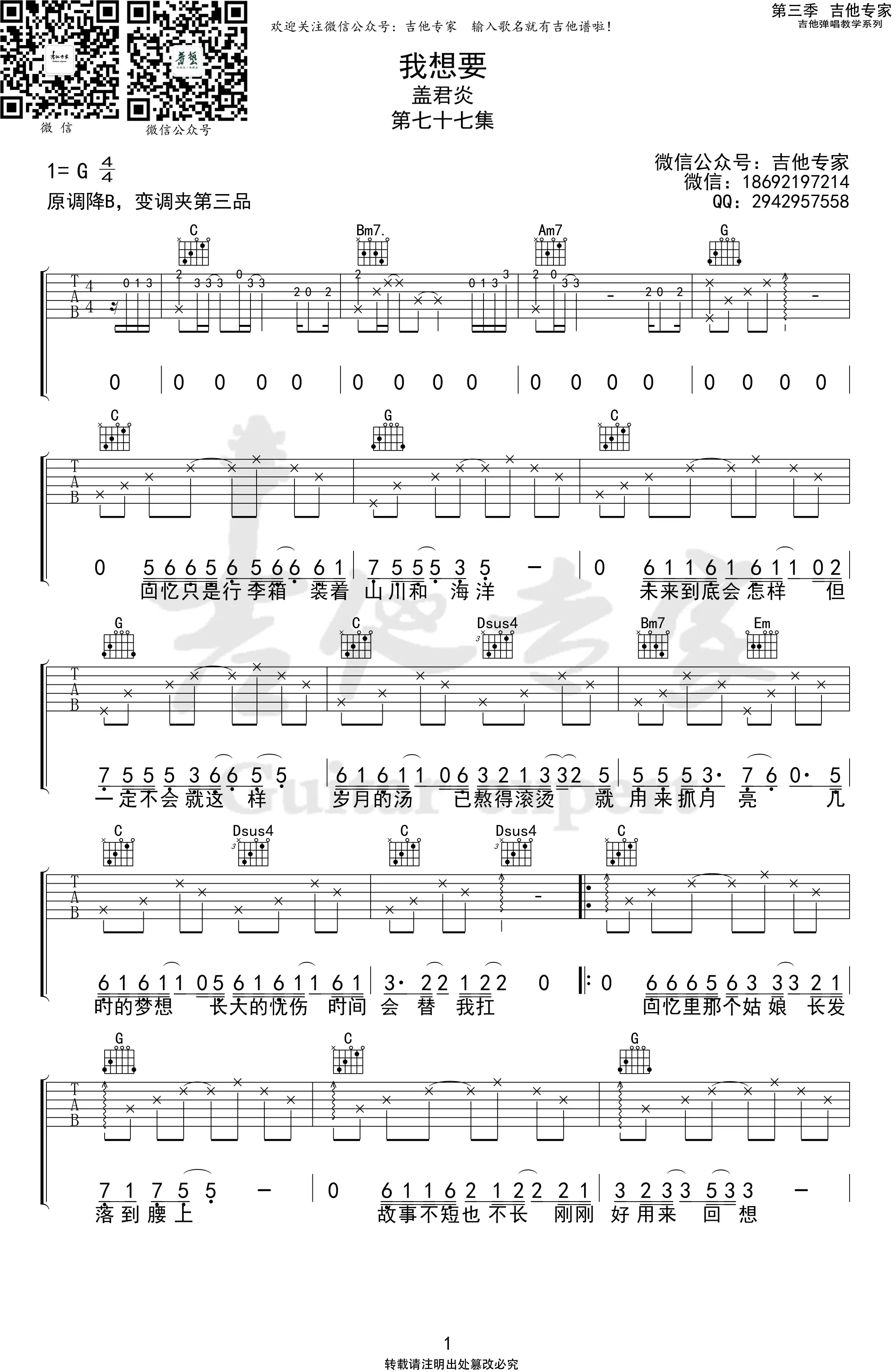 《我想要》吉他谱_盖君炎_G调弹唱谱_高清版_图片谱