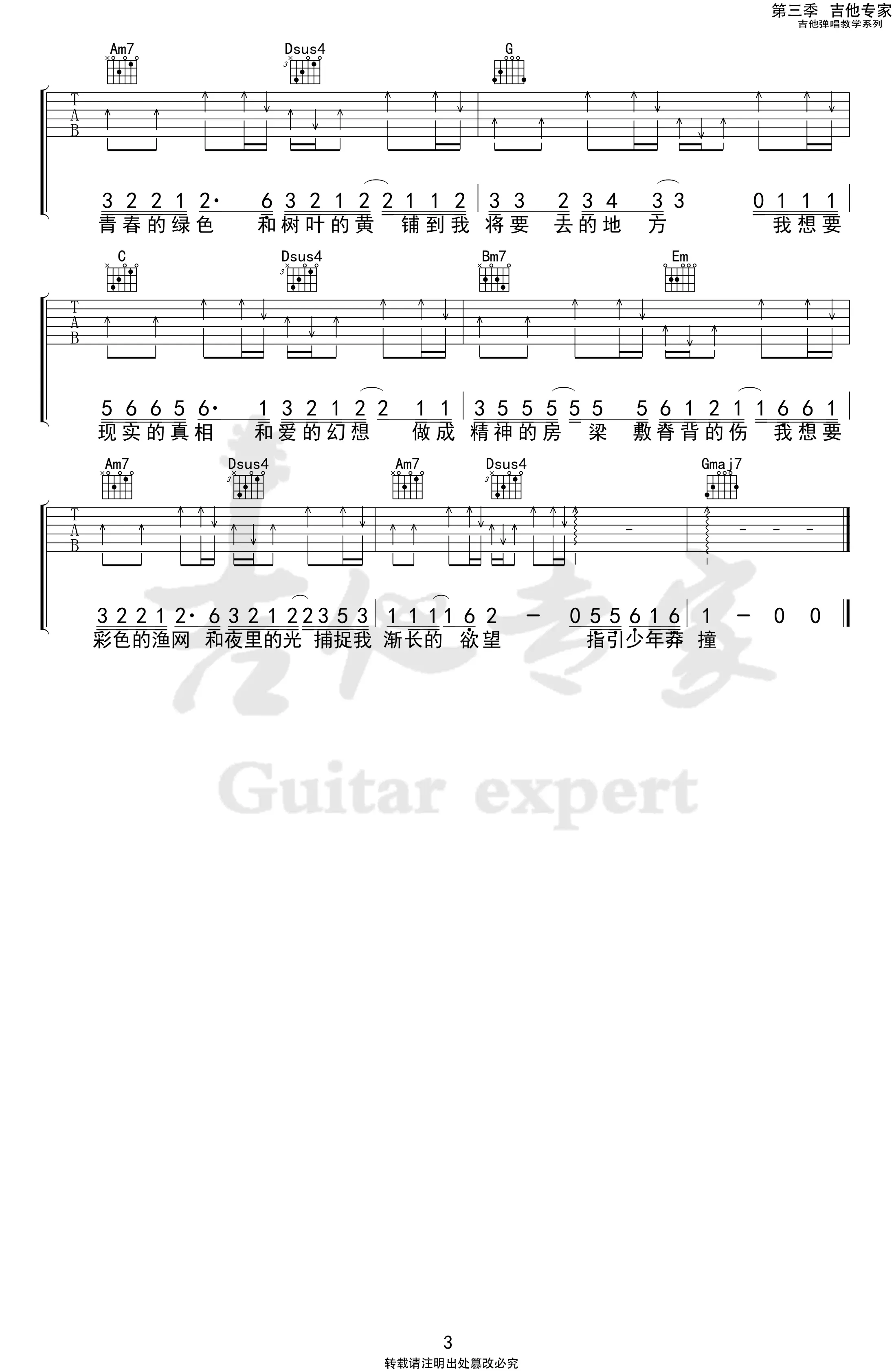 《我想要》吉他弹唱谱,盖君炎演唱,小青争作词,邓雨沐作曲,收录于2020年发行的专辑《我想要》中。吉他谱选用G调指法编配。