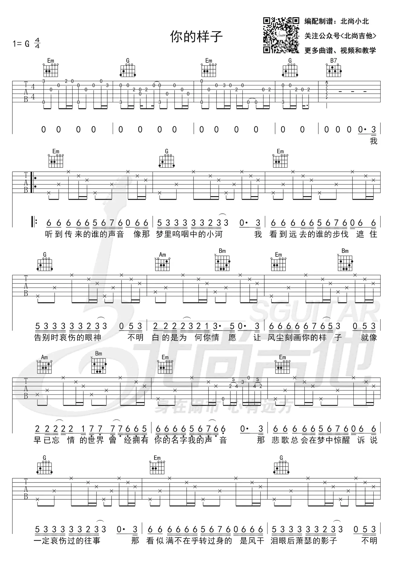 《你的样子》吉他谱,原唱罗大佑,林志炫翻唱,由罗大佑作词作曲,1995年发行,收录于专辑《一个人的样子》中。吉他谱选调G调。