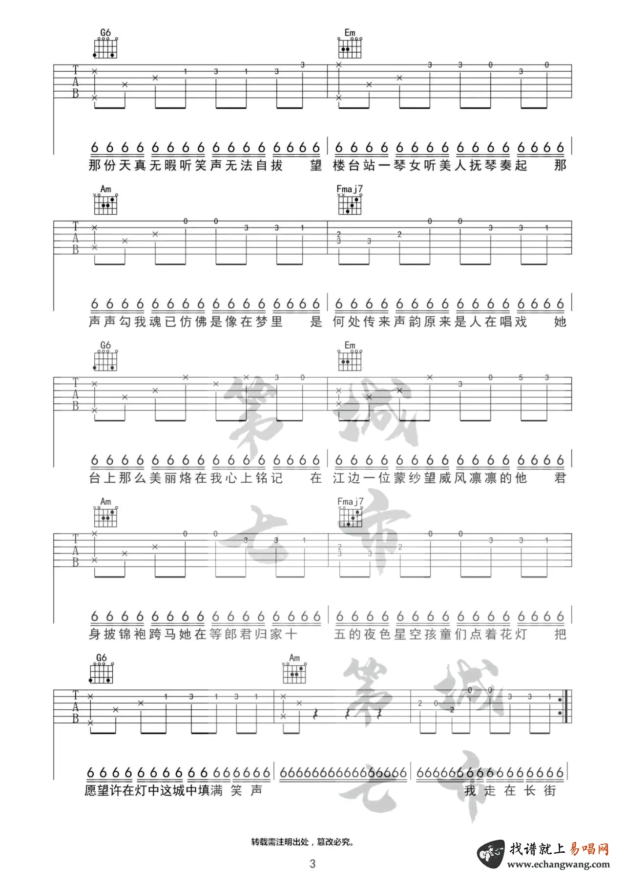 《清明上河图》吉他谱_李玉刚_G调_高清弹唱谱_图片谱