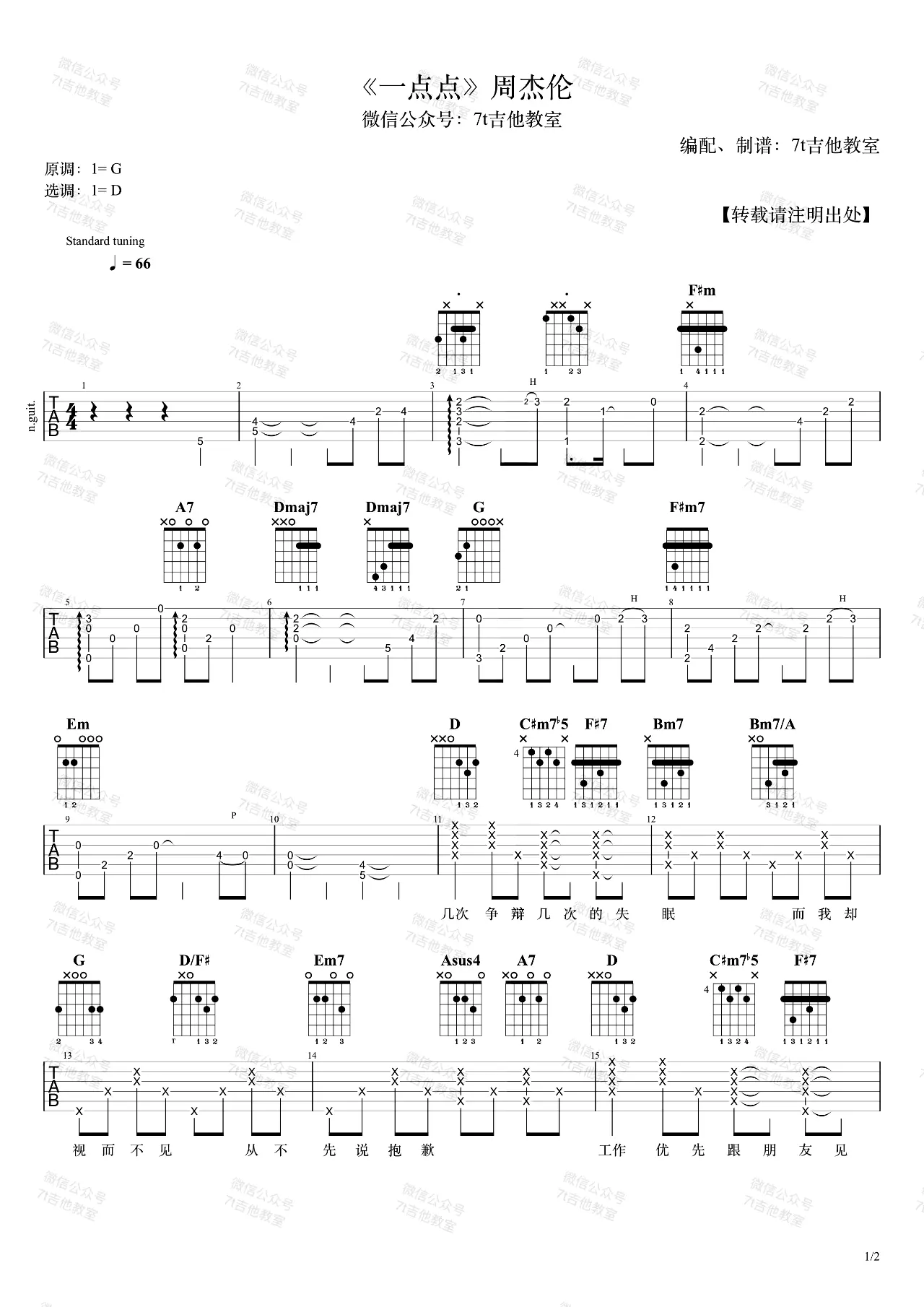 周杰伦《一点点》吉他谱,由方文山作词,周杰伦作曲及演唱的一首歌,收录在2016年发行的专辑《周杰伦的床边故事》中。