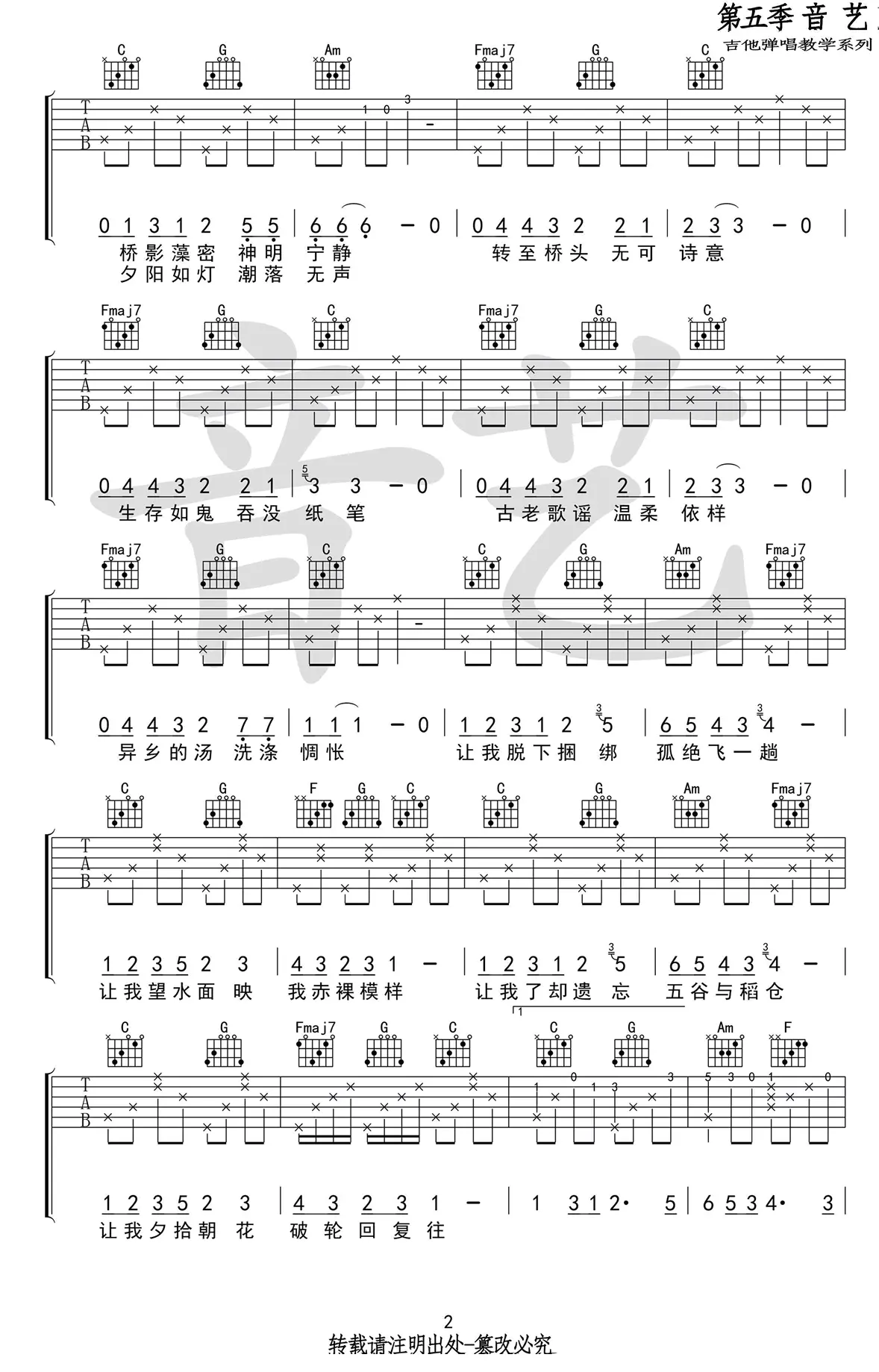 《云烟成雨》吉他谱_房东的猫_C调弹唱谱_六线谱_图片谱