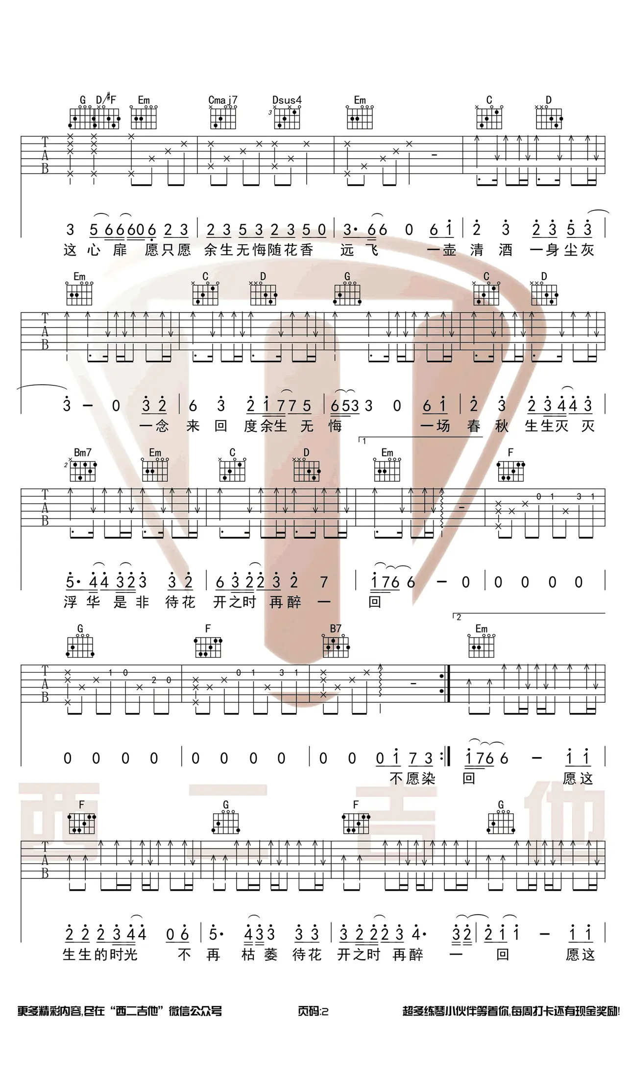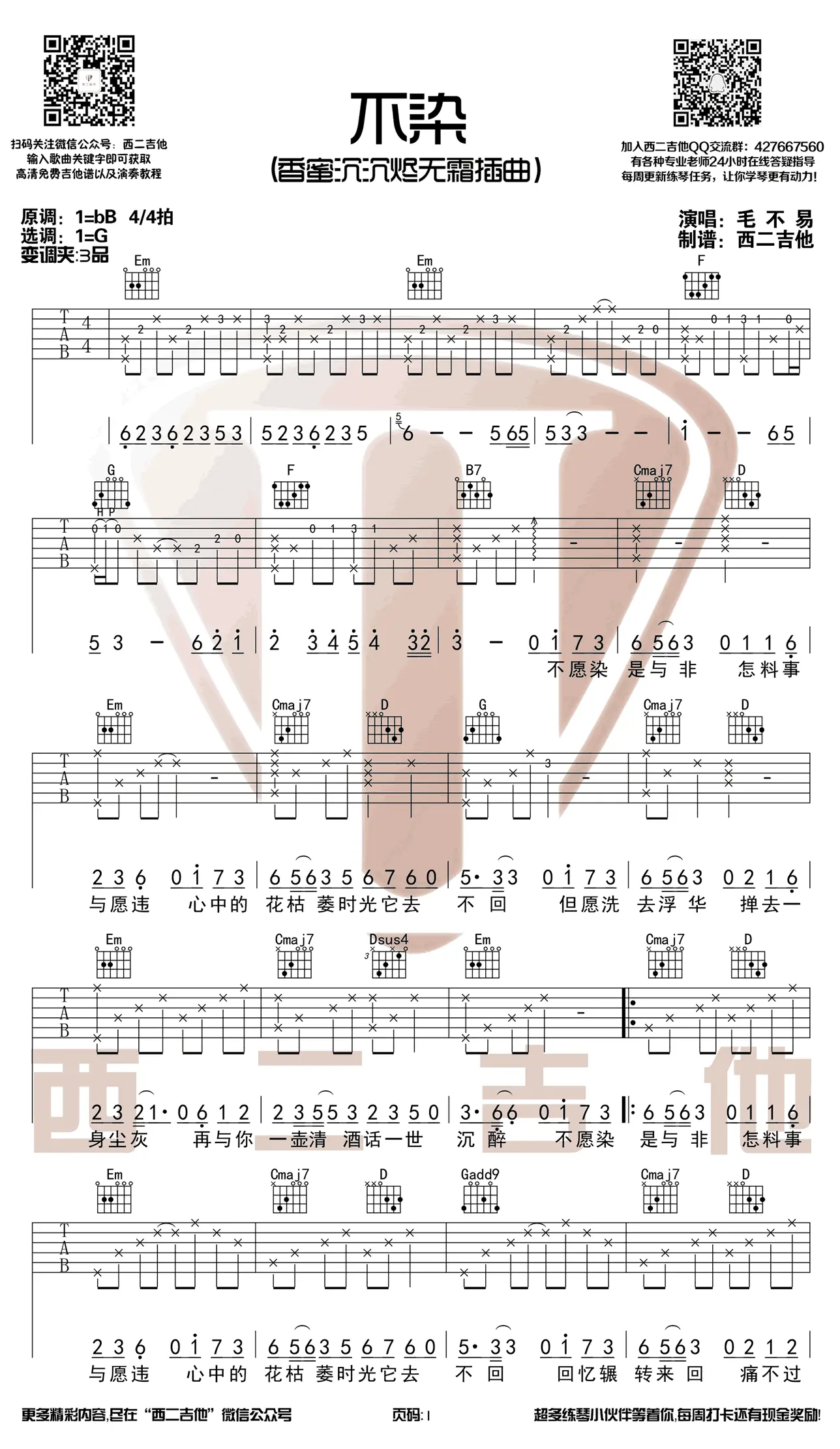 《不染》吉他谱,毛不易演唱,海雷作词,简弘亦作曲,2018年发行,收录于专辑《香蜜沉沉烬如霜 电视原声音乐专辑》中,为电视剧《香蜜沉沉烬如霜》主题曲。 吉他谱选用G调指法编配,capo夹3品,由西二吉他编配出品。