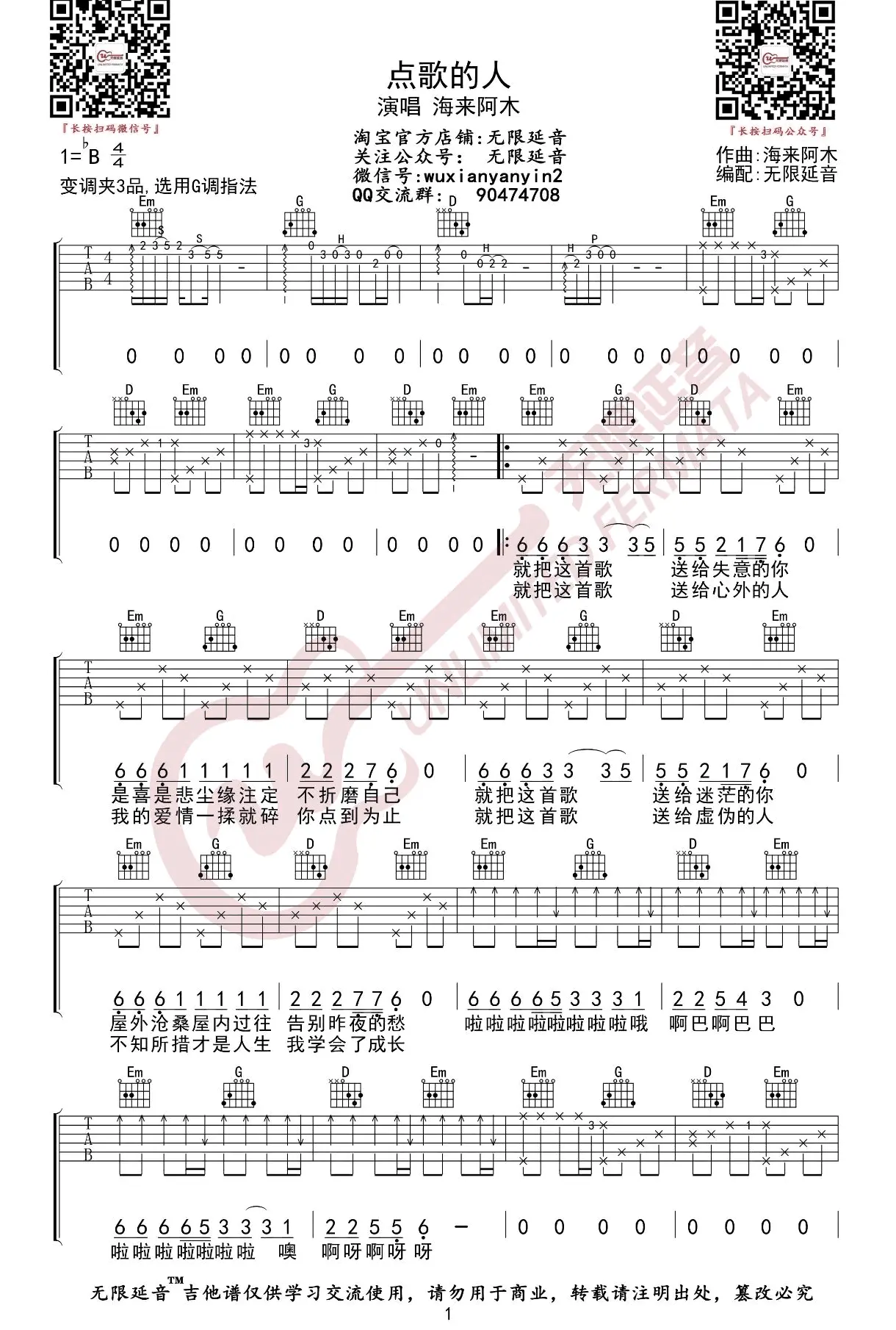 点歌的人吉他谱_海来阿木_G调_六线谱_弹唱图片谱