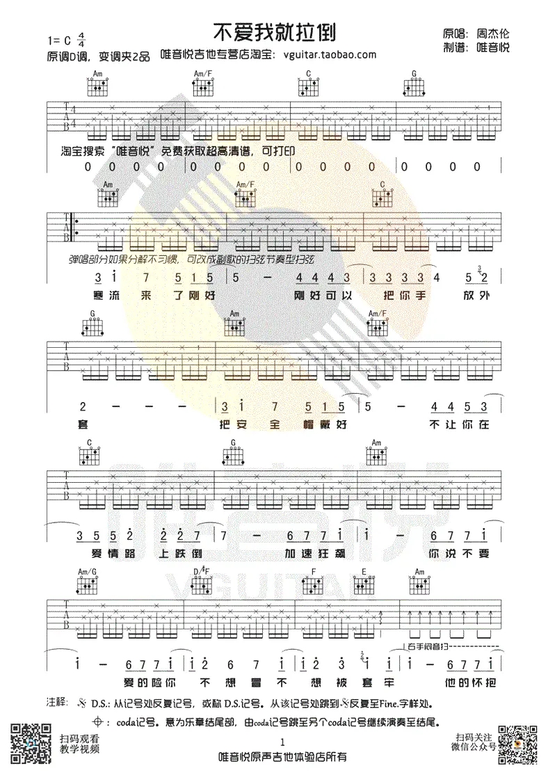 《不爱我就拉倒》吉他谱,周杰伦演唱,由周杰伦、宋健彰(弹头)作词,周杰伦作曲,2018年单曲形式发布,后收录于2022年发行的专辑《最伟大的作品》中。歌曲原调D,吉他谱选用C调指法编配,capo夹2品,共3张高清图片谱,由唯音悦编配出品。