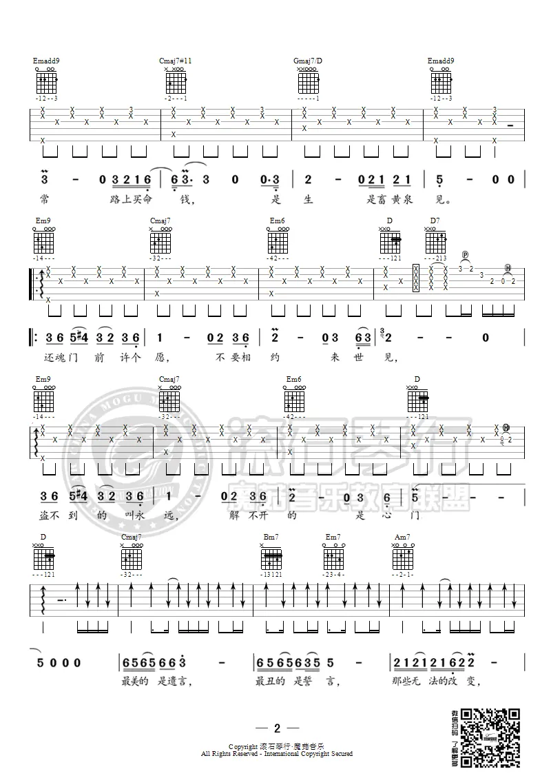 《还魂门》吉他谱,胡彦斌演唱的一首中国风歌曲,由林文炫作词,胡彦斌作曲,收录在2016年发行的专辑《电视剧《老九门》原声带》中,是电视剧《老九门》的主题曲,吉他谱选用G调指法编配。