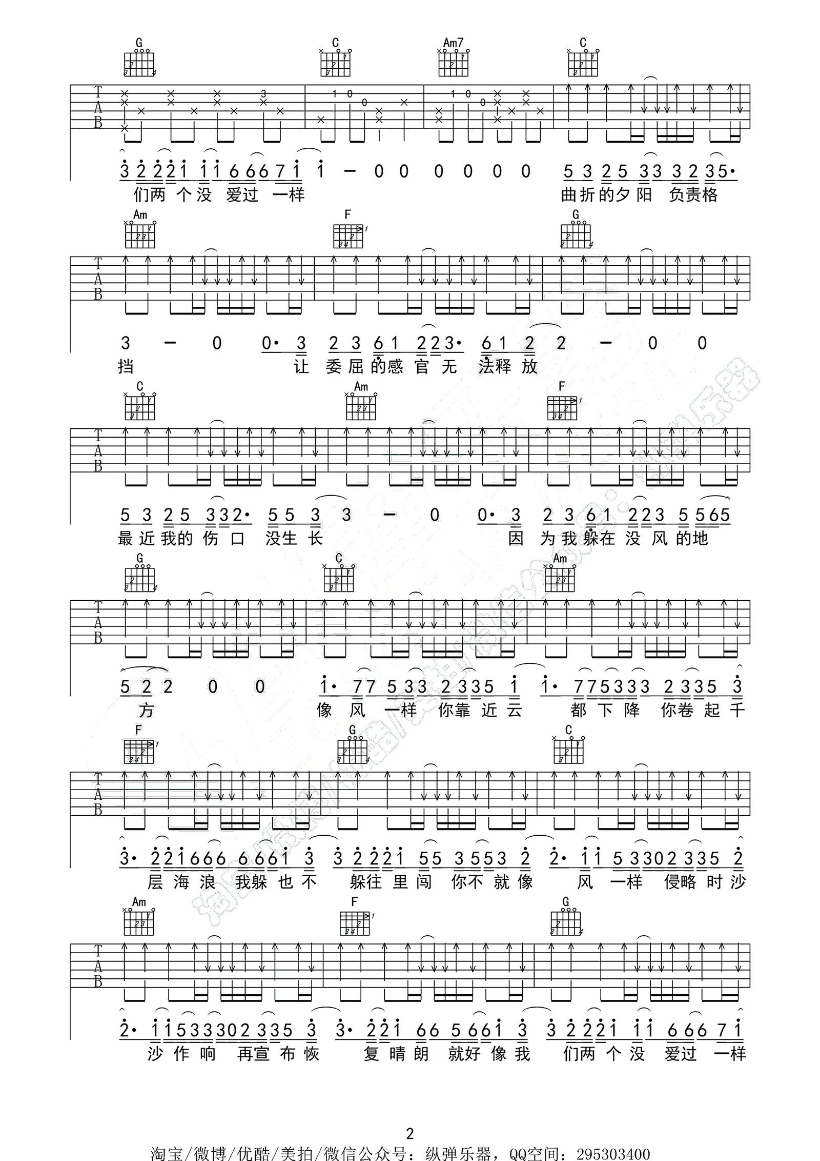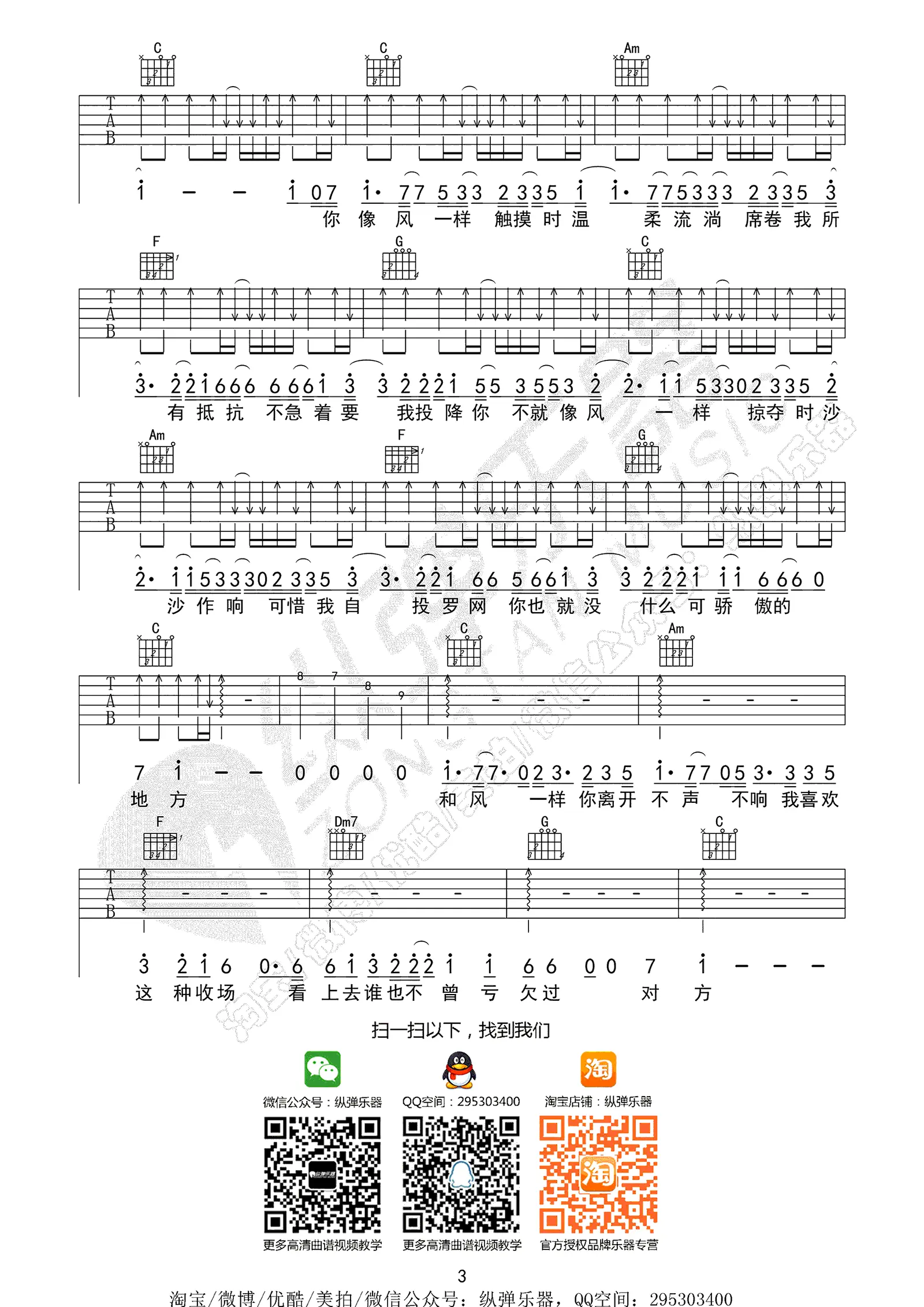《像风一样》吉他谱,薛之谦作词/作曲及演唱,收录于2017年发行的专辑《渡 The Crossing》中。吉他谱选用D调指法编配,capo夹2品,共3张高清图片谱,由纵玩乐器编配出品。