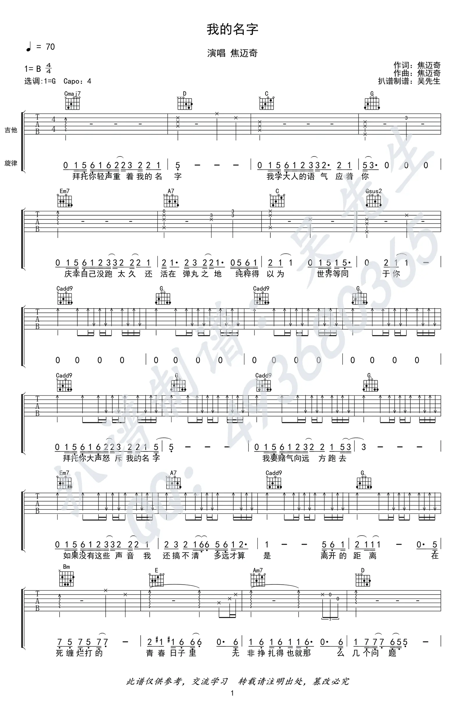 《我的名字》吉他谱_焦迈奇_G调_高清弹唱谱_图片谱