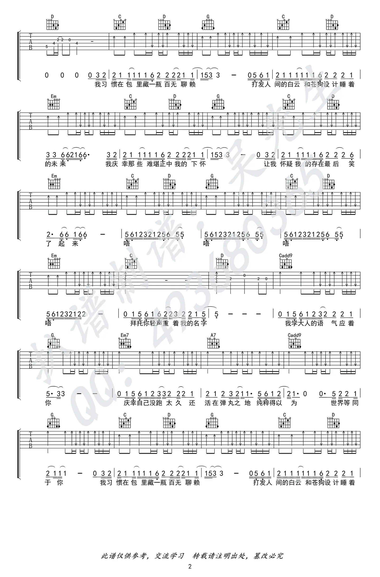 《我太笨》吉他谱_锤娜丽莎_G调_高清弹唱谱_图片谱