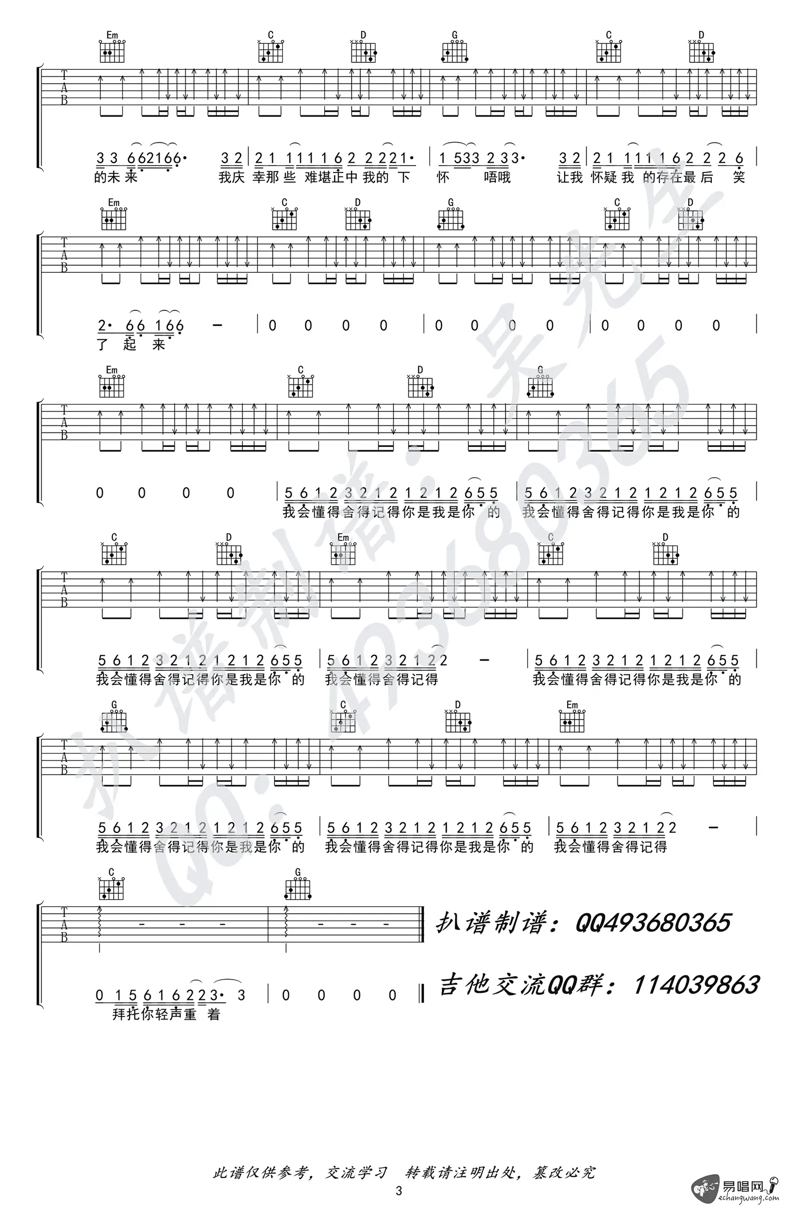 于是我不再唱歌吉他谱_旅行团乐队_弹唱谱_G调_图片谱